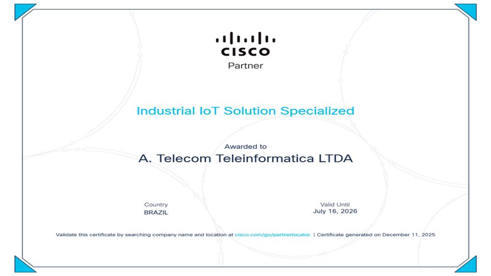 A A.Telecom acaba de conquistar a certificação Cisco Industrial IoT Solution Specialized, reforçando sua liderança e excelência na oferta de soluções para ambientes industriais conectados.
